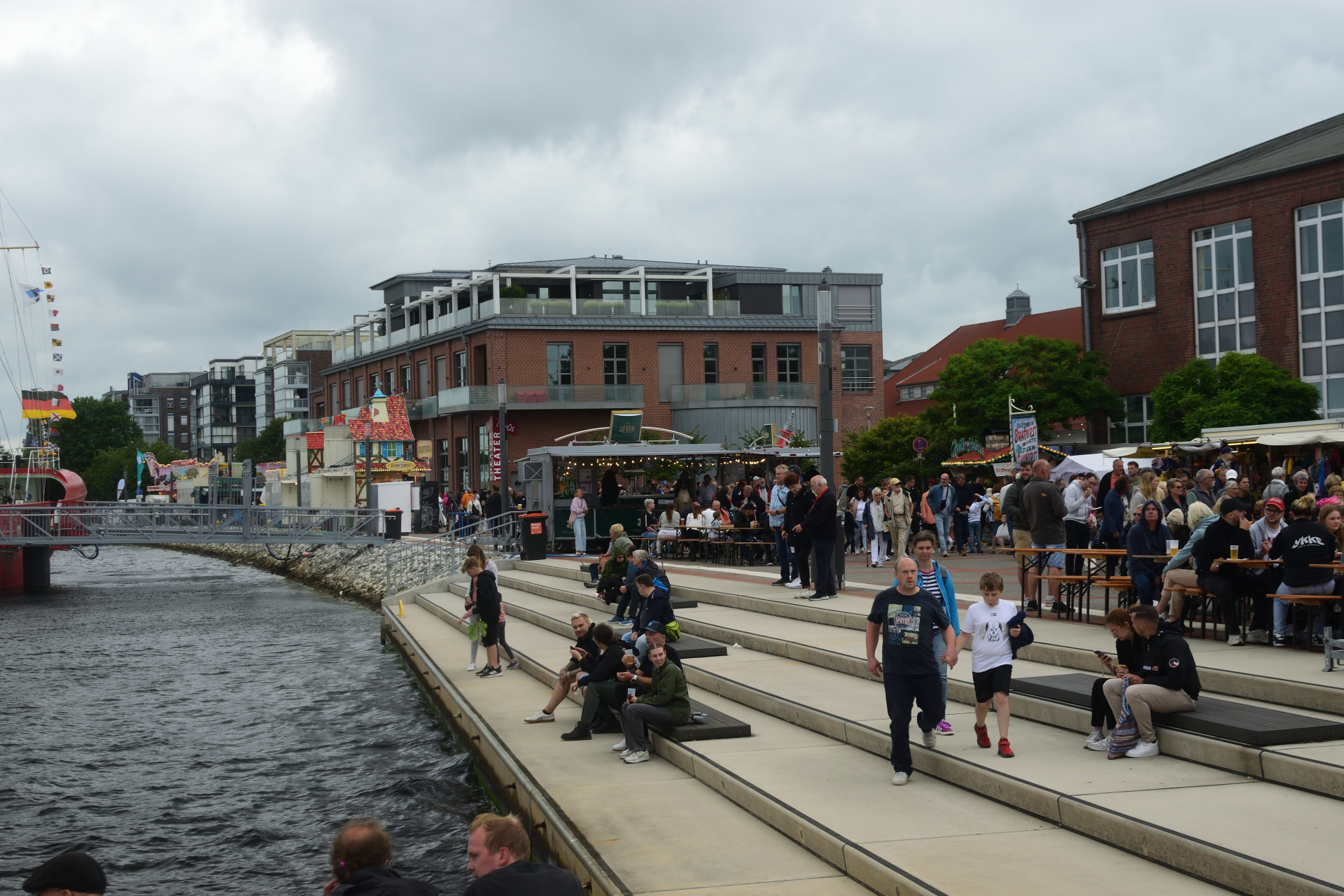 Mit einem Shanty-Chor im Einkaufszentrum direkt am Bahnhof ging es gleich los. Größter Anziehungspunkt war die Hafenpromenade, wo auf dem Wasser verschiedenste Schiffe vom Krabbenkutter, einem Feuerschiff und einem Eisbrecher bis zu Schiffen der Marine zu sehen und teilweise auch zu besichtigen waren. Auf der Promenade boten Bühnen die Gelegenheit zum Zuhören, aber auch zum Mitmachen. Und natürlich waren neben den Verkaufsständen auch vielzählige Essens- und Getränkestände aufgebaut, so dass auch niemand hungern oder dürsten musste.