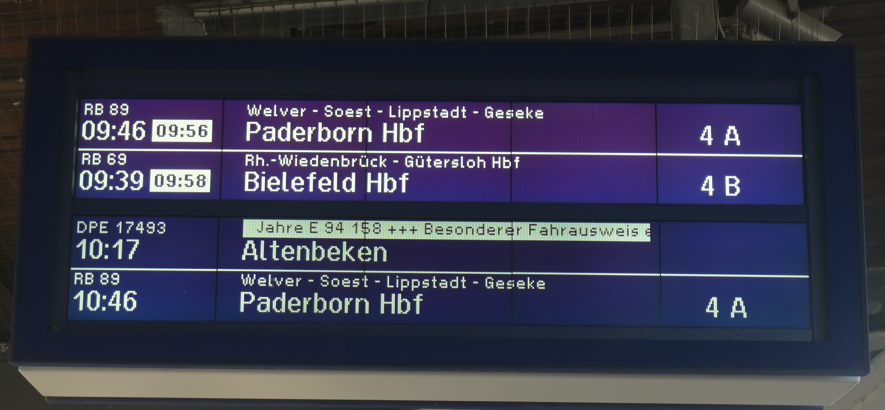 im Morgenlicht auf Gleis 700 in Hamm; Auf der Abfahrtstafel