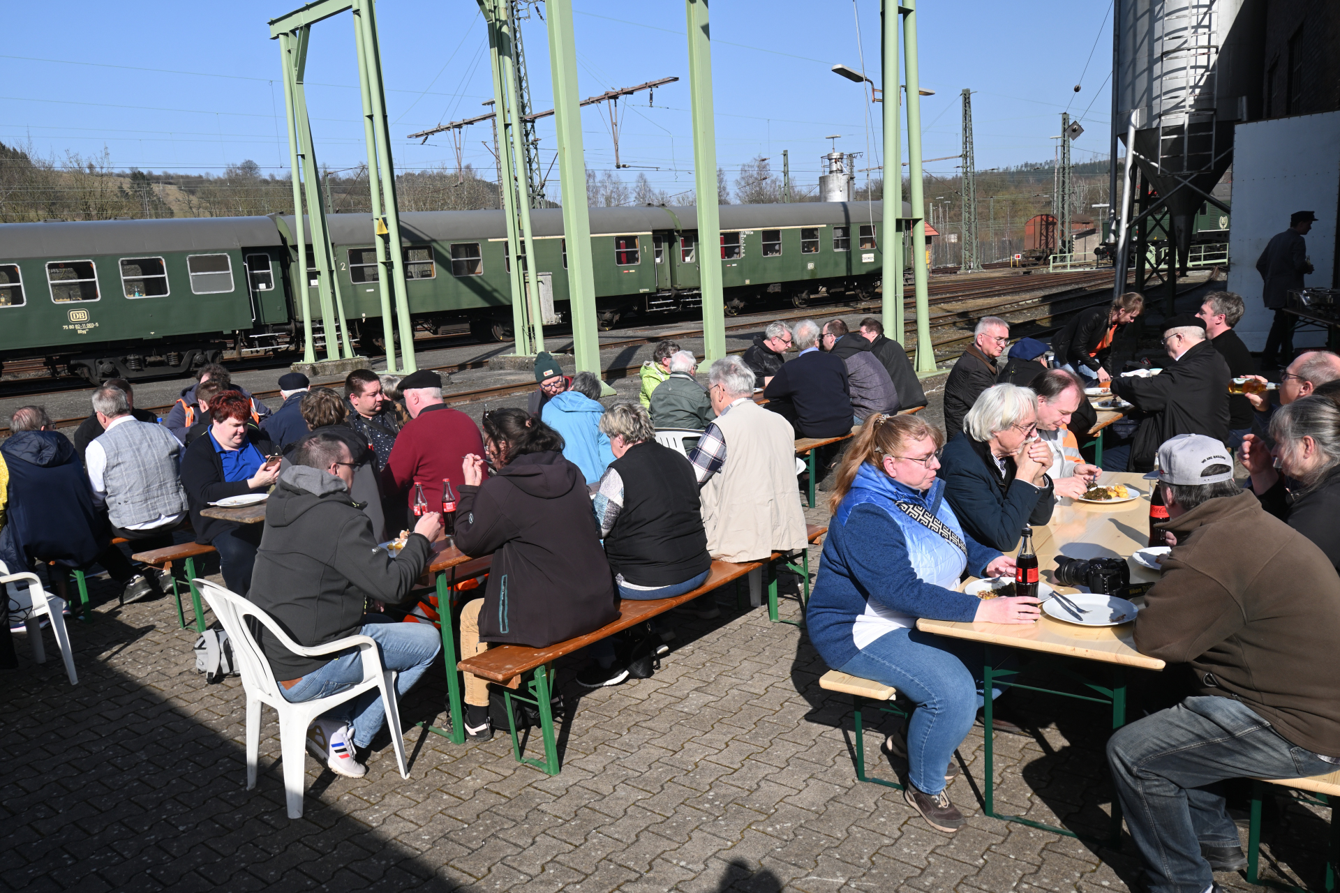 Natürlich waren auch einige Ehrengäste geladen wie Barbara-Birgit Brunne als Eigentümerin und Leihgeberin sowie der unserer Eisenbahn schon lange sehr gewogenen ehemaligen Erzbischof von Paderborn, Herrn Hans-Josef Becker, Sohn eines Lokführers der Westfälischen Landeseisenbahn, sowie die Lebens- oder Ehepartner/innen der Aktiven.