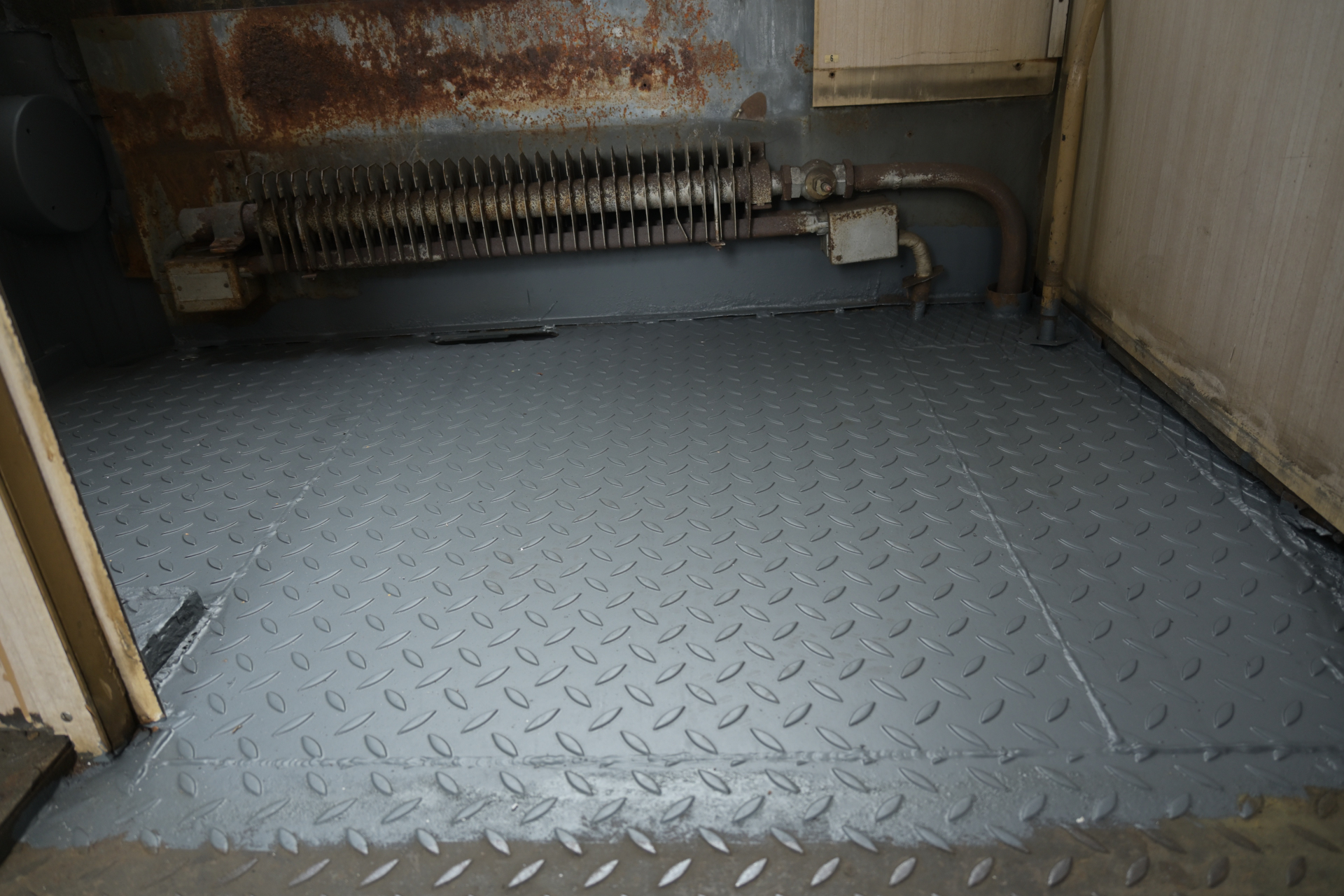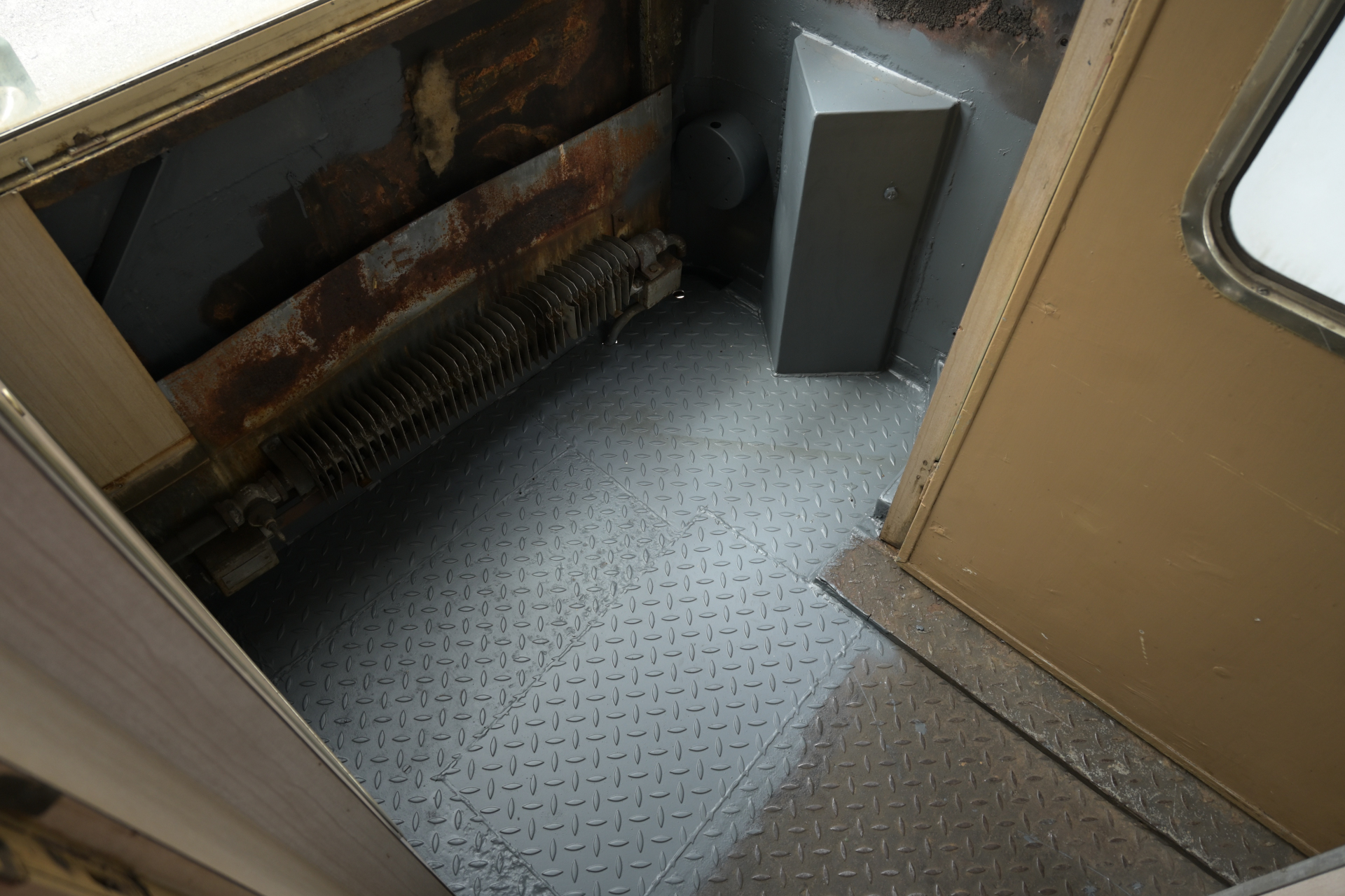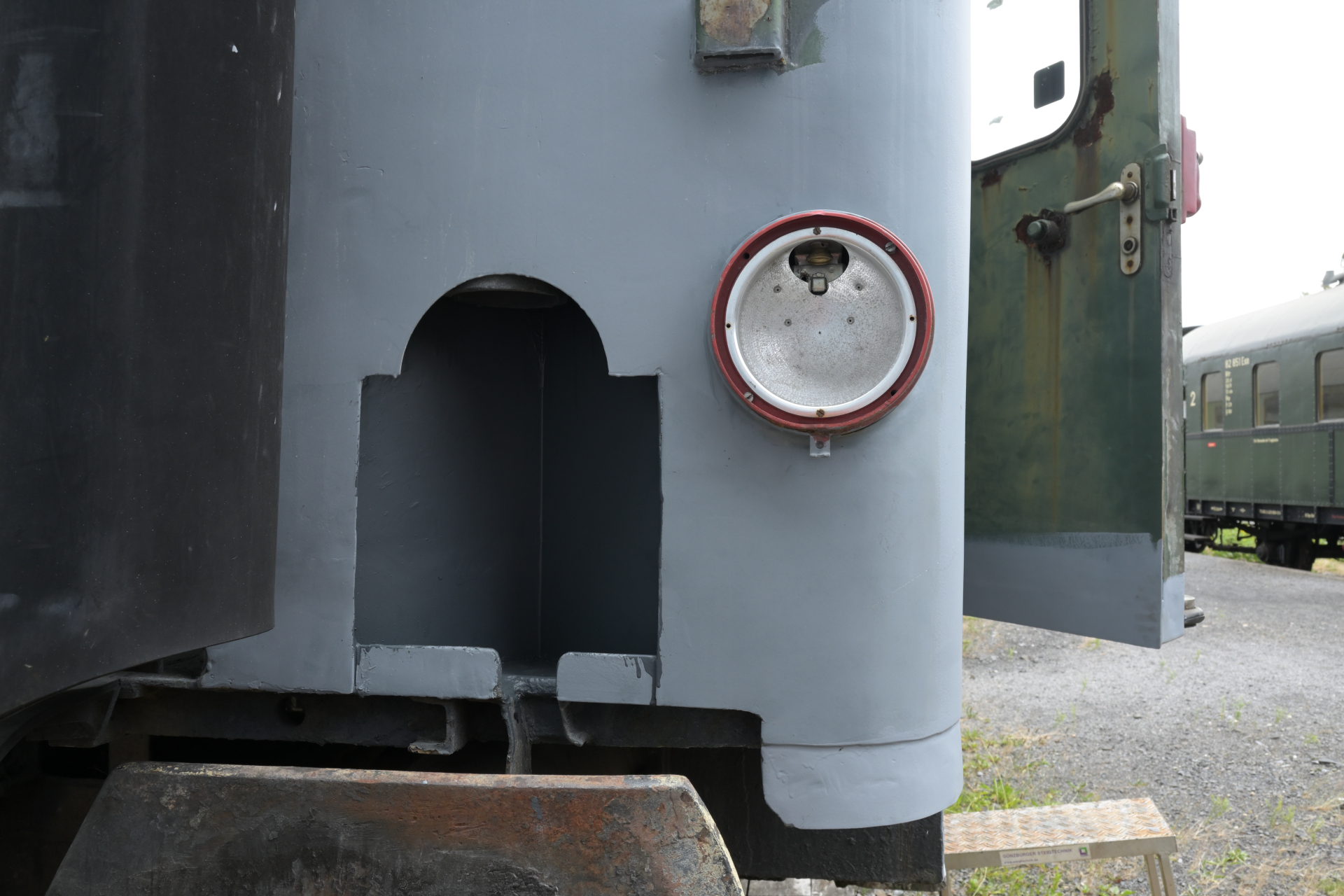 Außerdem wurde bereits das hergerichtet, was den Wagen besonders macht: Die Lampeneinsätze für das Dreilicht-Spitzensignal. Damit sieht die Wagenfront bis auf die später einzusetzenden Fenster und das noch fehlende Signalhorn schon wieder recht original aus. Auch der angefressene Fußboden in den beiden Dienstabteilen ist durch neues Riffelblech ersetzt worden.