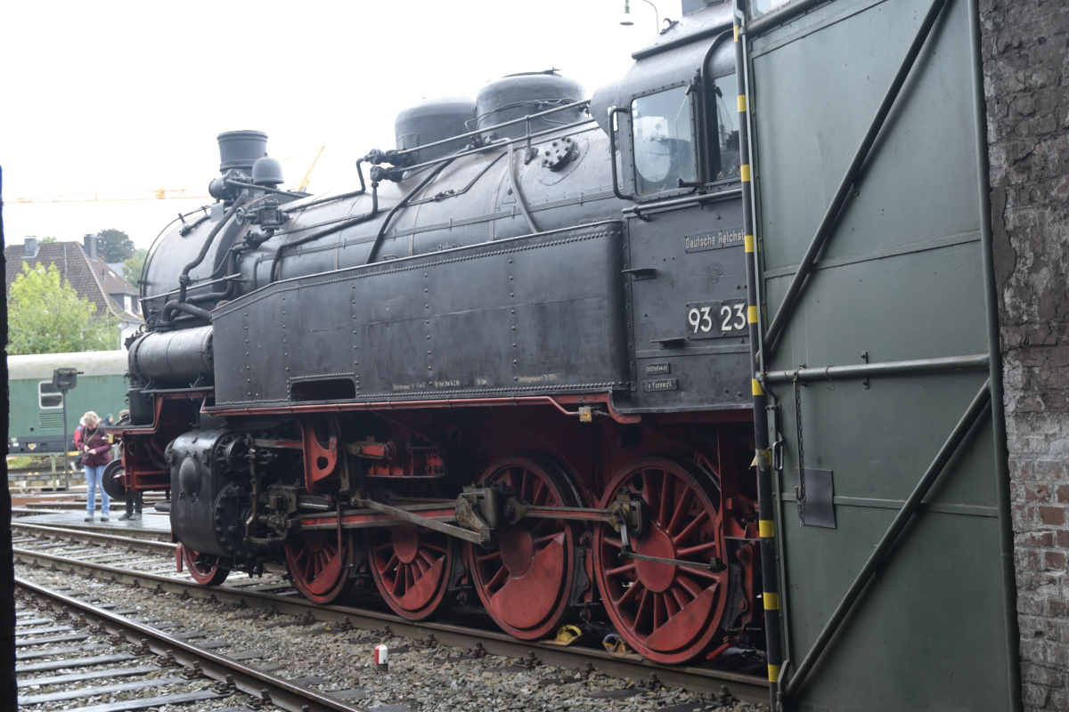 Das Eisenbahnmuseum konnte direkt von unserem Zug angefahren werden, so dass die Fahrgäste unmittelbar am Ziel waren. Dieringhausen zählt zu den nicht so bekannten Museen, hat aber trotzdem eine sehenswerte Sammlung an eigenen Museumsloks, darunter auch mehrere Dampfloks zu bieten. Neben den Museumsfahrzeugen sind hier auch die Loks der Aggertalbahn zu Hause. Dazu wird es auch von Lokomotiven anderer Eisenbahnunternehmen angefahren, wenn diese zur Wartung müssen oder in der Nähe Züge zu fahren haben. In früheren Zeiten, als Dieringhausen noch ein bedeutender regionaler Bahnknoten war, waren hier die Dampf- und Diesellokomotiven für das Oberbergische Land zu Hause gewesen. Berühmte Züge wie der „Bischofszug“ von Köln nach Paderborn, damals über Dieringhausen, Olpe, Finnentrop, Meschede und Brilon, fuhren hier vorbei. Lange ist es her.