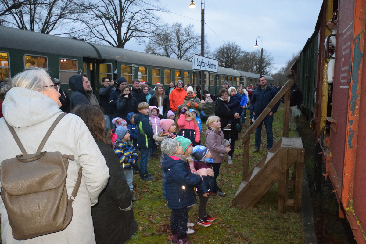 Alle Jahre wieder, so auch in diesem Jahr endet die Fahrtsaison mit einem besonderen Ereignis für die Kinder: Eine Eisenbahnfahrt mit dem Nikolaus, der jedem Kind eine süße Tüte schenkt und der mit ihnen im Zug oder auf dem Bahnsteig Weihnachtslieder singt.