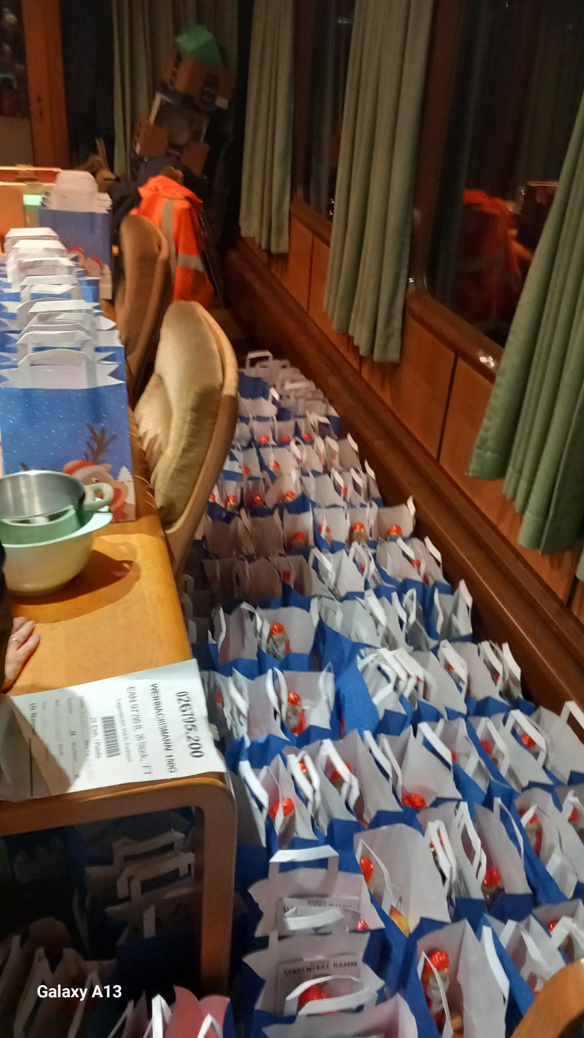 So war es auch in diesem Jahr, wo schon lange vor der Abfahrt an unserem Lokschuppen in Hamm Süd klein und groß zusammenströmten und den Zug füllten, der nach dem zweiten Zustieg am Maxi-Park bis auf den letzten Platz besetzt war. Über 270 Kinder waren zu den drei Fahrten im Zug. Damit diese alle zu ihrem Recht und ihrer Nikolaustüte kommen konnten, waren Tage vorher schon fleissige Helfer des Nikolaus tätig, die die Gabentüten vorbereiteten.